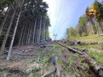 Images from the site showed the crumpled car in a clearing of a thick patch of pine trees near the summit of the Mottarone peak overlooking Lake Maggiore. The car was believed to have fallen around 15 meters (50 feet), according to Italian media.
