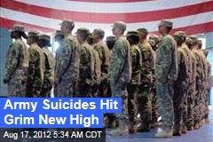 At this rate, the Army could lose 200 active-duty troops to suicide this year; the suicide toll for 2011 was 167, reports the AP. The other branches of the military don't seem to have been spared, either: The Marine Corps had eight suicides in July, up from six in June, making July its highest monthly total of 2012. Its total for the first seven months of the year stands at 32, equal to the Marines' total for all of 2011. The Air Force said it had six in July, compared with two in June. The Navy had four in July but its June figure was not immediately available.