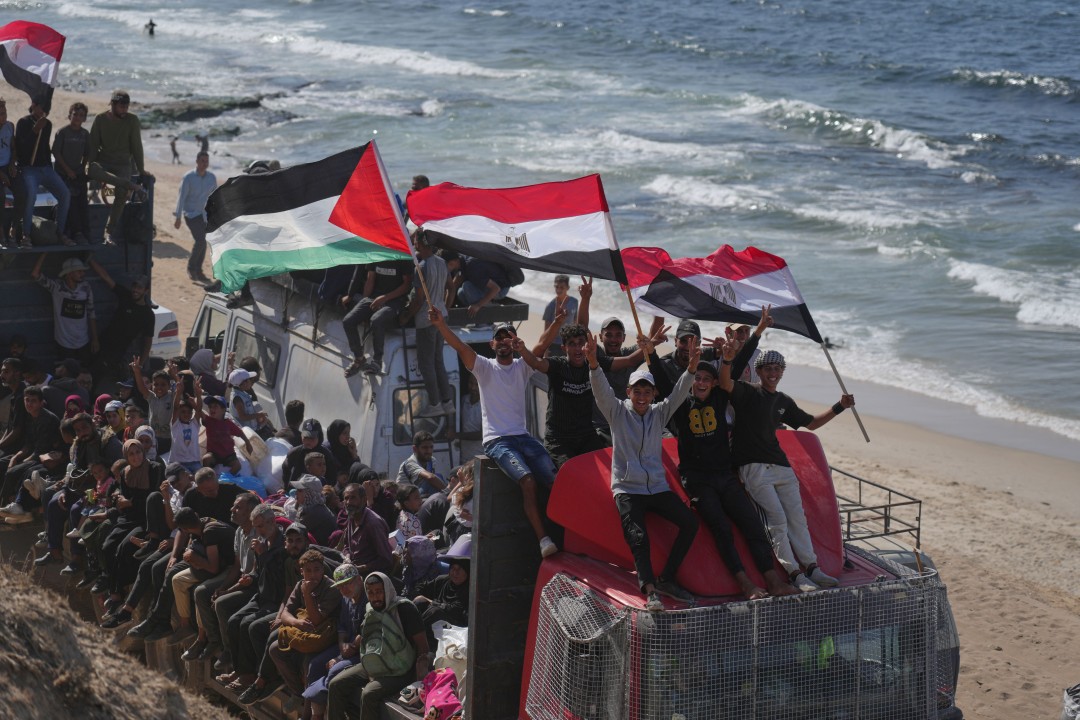 The Gaza ceasefire held in its second day as tens of thousands of displaced Palestinians returned to their neighborhoods Saturday and Israelis cheered the pending release of remaining hostages. "Gaza is completely destroyed. I have no idea where we should live or where to go," said Mahmoud al-Shandoghli in Gaza City as bulldozers clawed through the wreckage of two years of war. A boy climbed a shattered building to raise the Palestinian flag. Israelis applauded President Trump, and some booed Prime Minister Benjamin Netanyahu, the AP reports, as US envoy Steve Witkoff and Trump's son-in-law Jared Kushner addressed a weekly rally in Tel Aviv that many hoped would be the last.